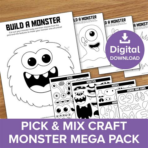 Make A Monster Mega Pack, Alien Pick & Mix Craft Printable, Halloween Party Cut Paste Art Activity, Spooky Creature Drawing Prompt Template