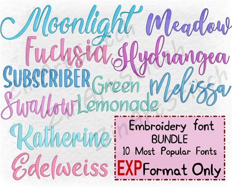 Bundle 10 Bestsellers Embroidery Fonts, Instant Download, Alphabet, Script, 7-8 Sizes, ONLY EXP Format